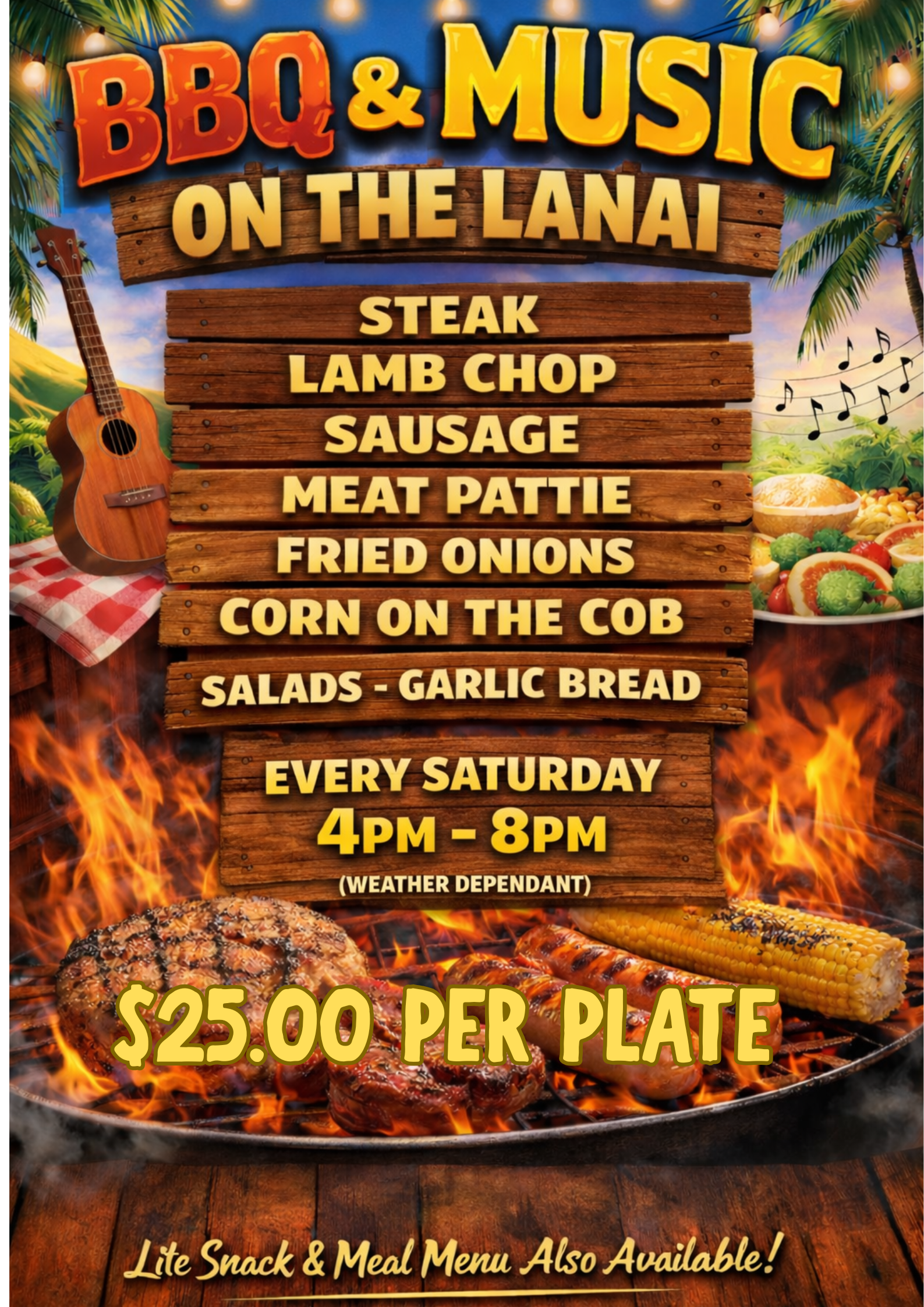Tuesday - Lunch 12-2pm. (LITE SNACK MENU)